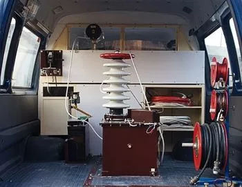- испытания изоляции кабелей и др. устройств и приспособлений постоянным и переменным (50 гц) высоким напряжением;