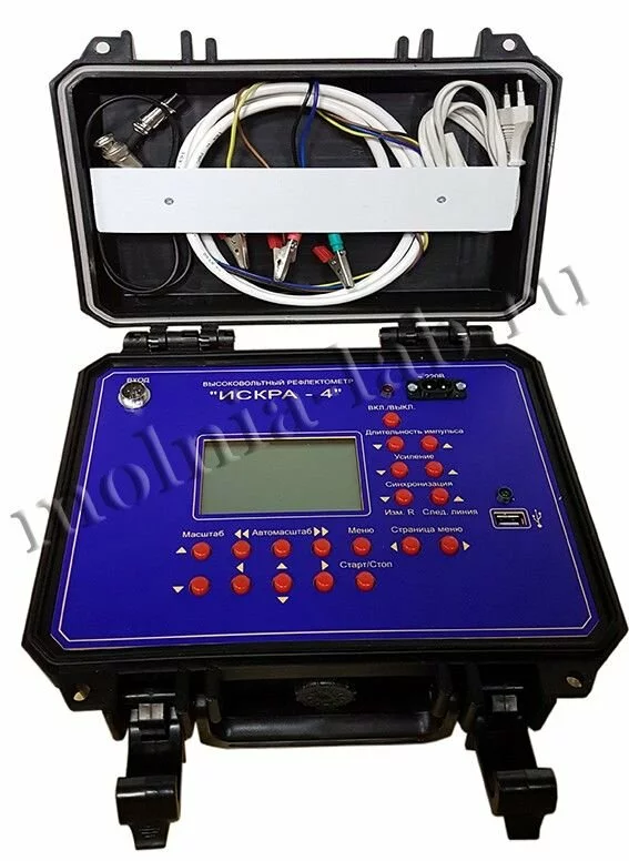Высоковольтный рефлектометр «Искра-4» используется для определения расстояния до места повреждения кабелей электроснабжения. Рефлектометр является необходимым оборудованием для оснащения передвижной электролаборатории.